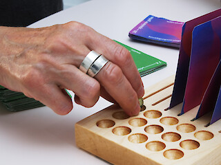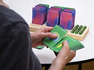 In diesem Projekt wurde nachgewiesen, dass die Bereitstellung von Wörtern für Emotionen sowie für verschiedene Bewältigungsstrategien den Menschen bei ihrem aktiven persönlichen Reflexionsprozess hilft. Diese Worte - gedruckt auf physischen Karten - helfen, eine Verbindung zu vergangenen Erfahrungen herzustellen und ein klareres Verständnis des eigenen Befindens zu entwickeln. Der zusätzliche Ständer für die Karten dient als Basis für eine wiederkehrende und bewusste Selbstreflexion. Die Erkenntnisse wurden in Gesprächen und enger Zusammenarbeit mit mehreren Krebspatient:innen gewonnen.
