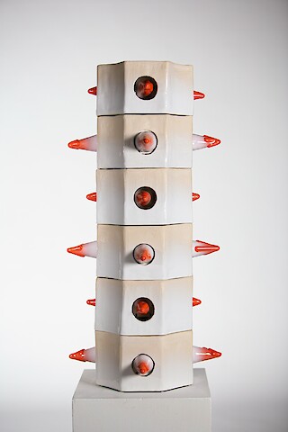 «Pagoda.tmos» besteht aus drei interaktiven Skulpturen mit natürlichen Schnittstellen. Schnittstellen, die Modalitäten auffordern, anstatt Informationen numerisch darzustellen. Jede Skulptur sammelt Umgebungsdaten in Echtzeit und repräsentiert sie durch bioreaktive Materialumwandlung, kinetische Bewegung und Klangerzeugung. Diese atmosphärischen Pagoden zielen darauf ab, dass die Zuschauer einen Moment der Kontemplation, Reflexion, Vereinigung sowie Erleuchtung für ein widerhallendes Erlebnis erfahren.